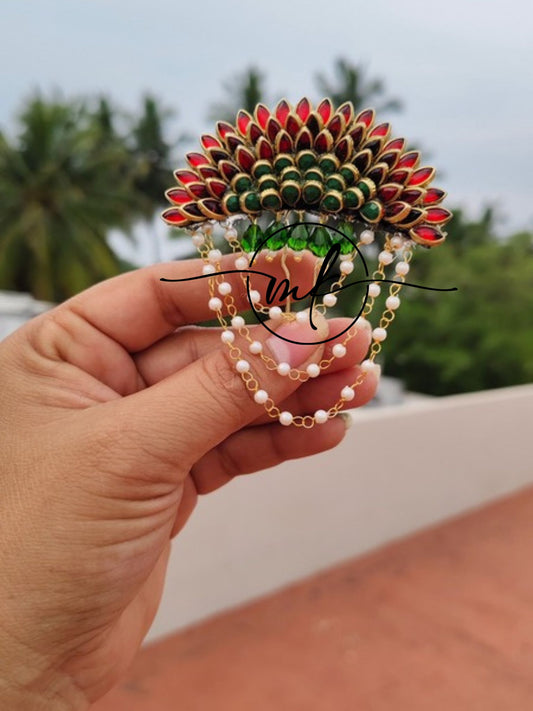 Dark Pink Dark Green Coin Sunflower Hair Brooch