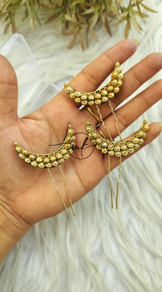 Cresent Moon Golden Hair Brooch - Set of 6 Pieces