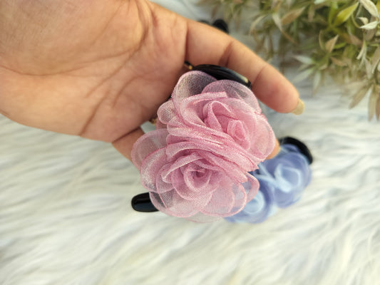 Organza Flower Premium Banana clips- Mid Size - V type