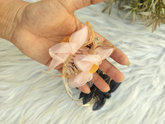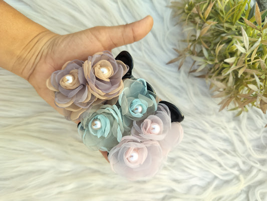Organza Flower Pearl Premium Banana clips- Mid Size - V type