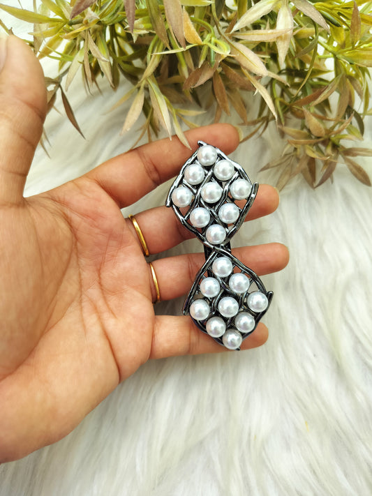 Silver pearl Metal Buckle Clip - Medium Size