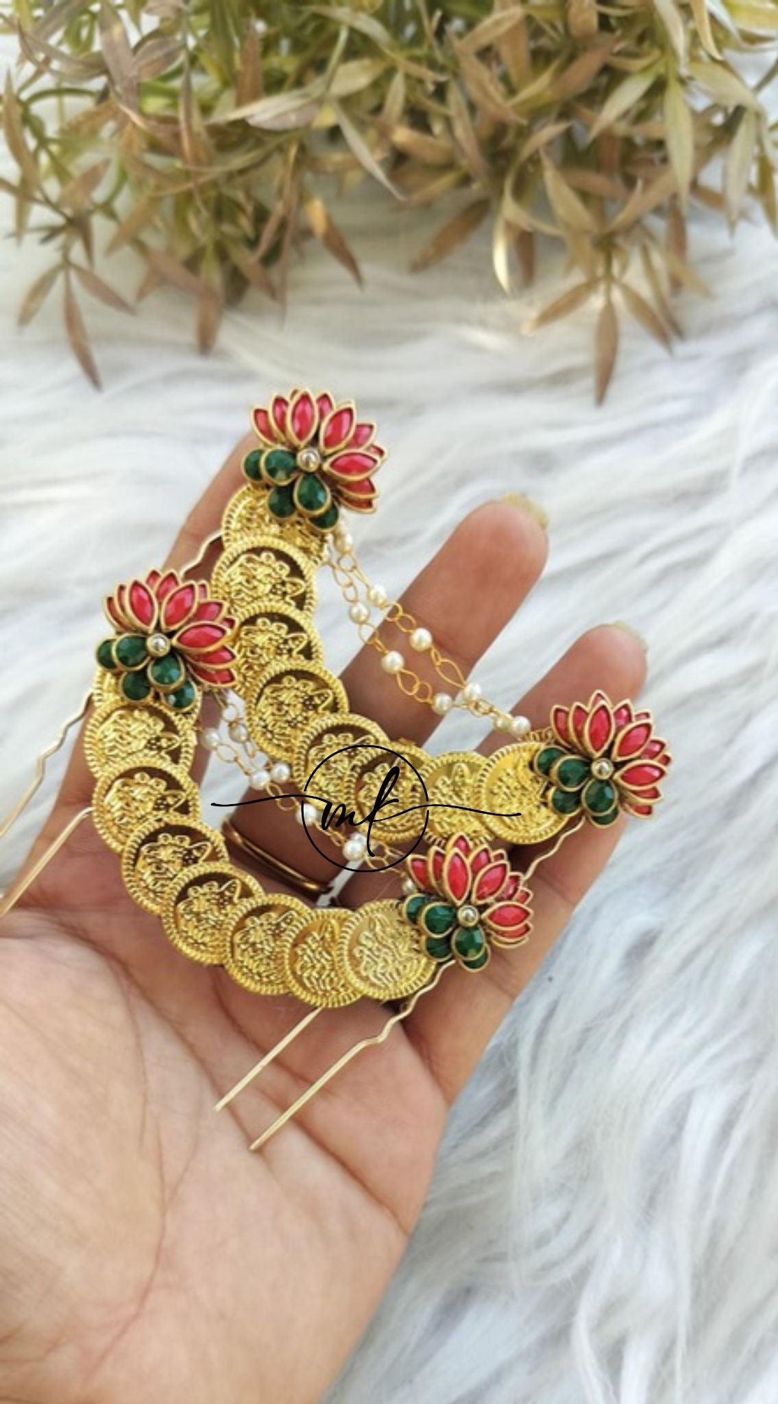 Cora Red Matt Lotus Hair Brooch