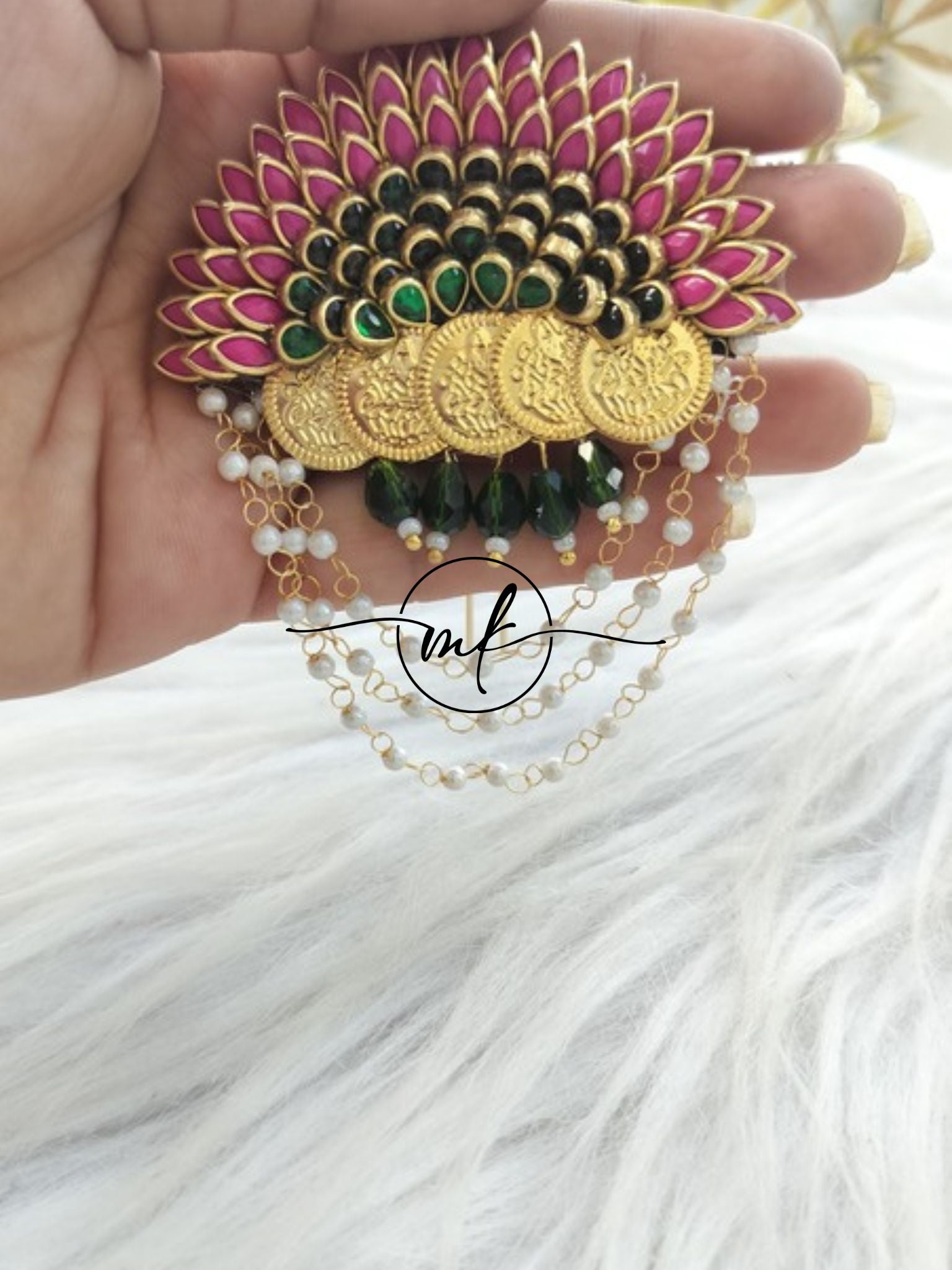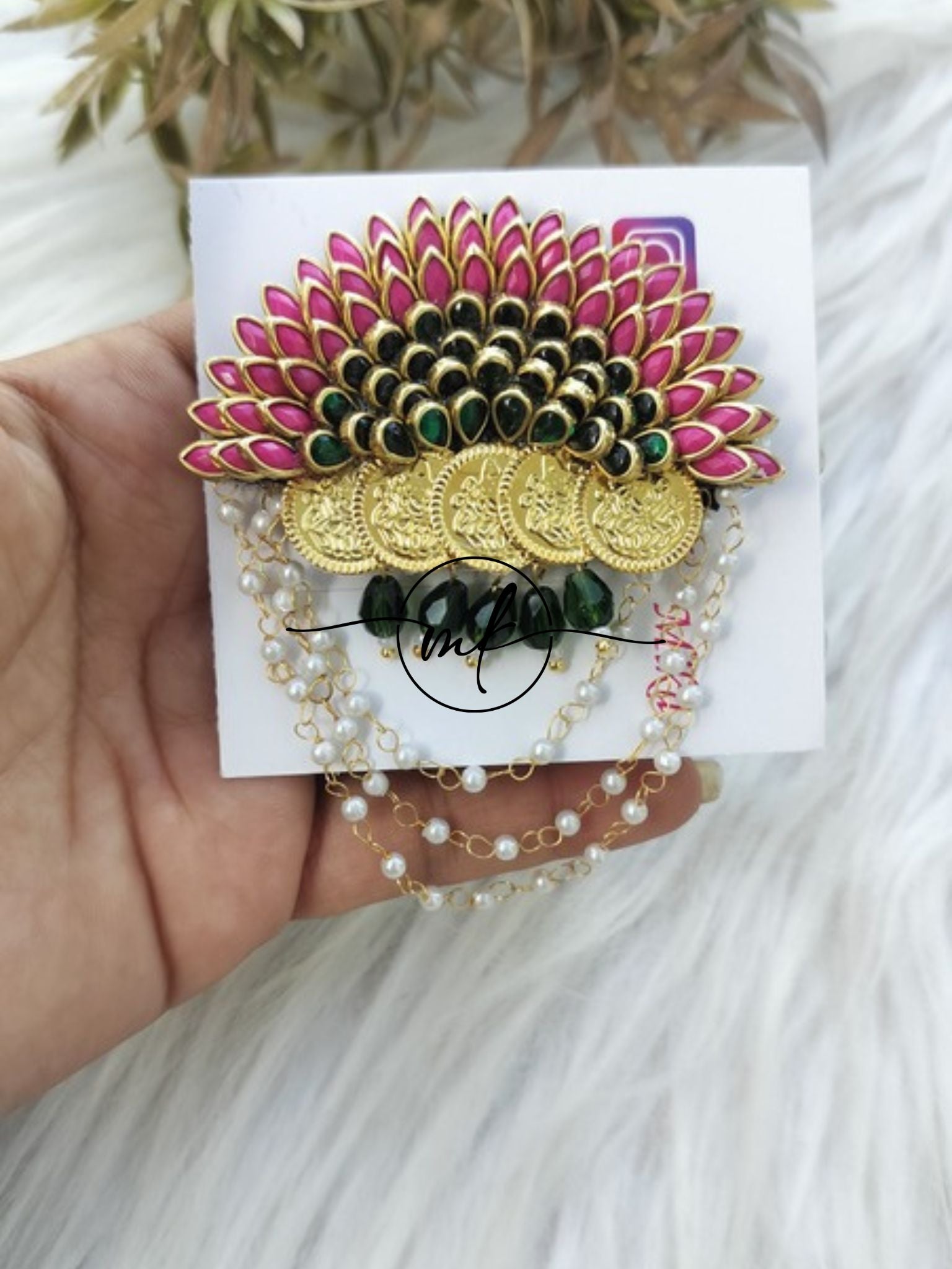 Dark Pink Dark Green Coin Sunflower Hair Brooch