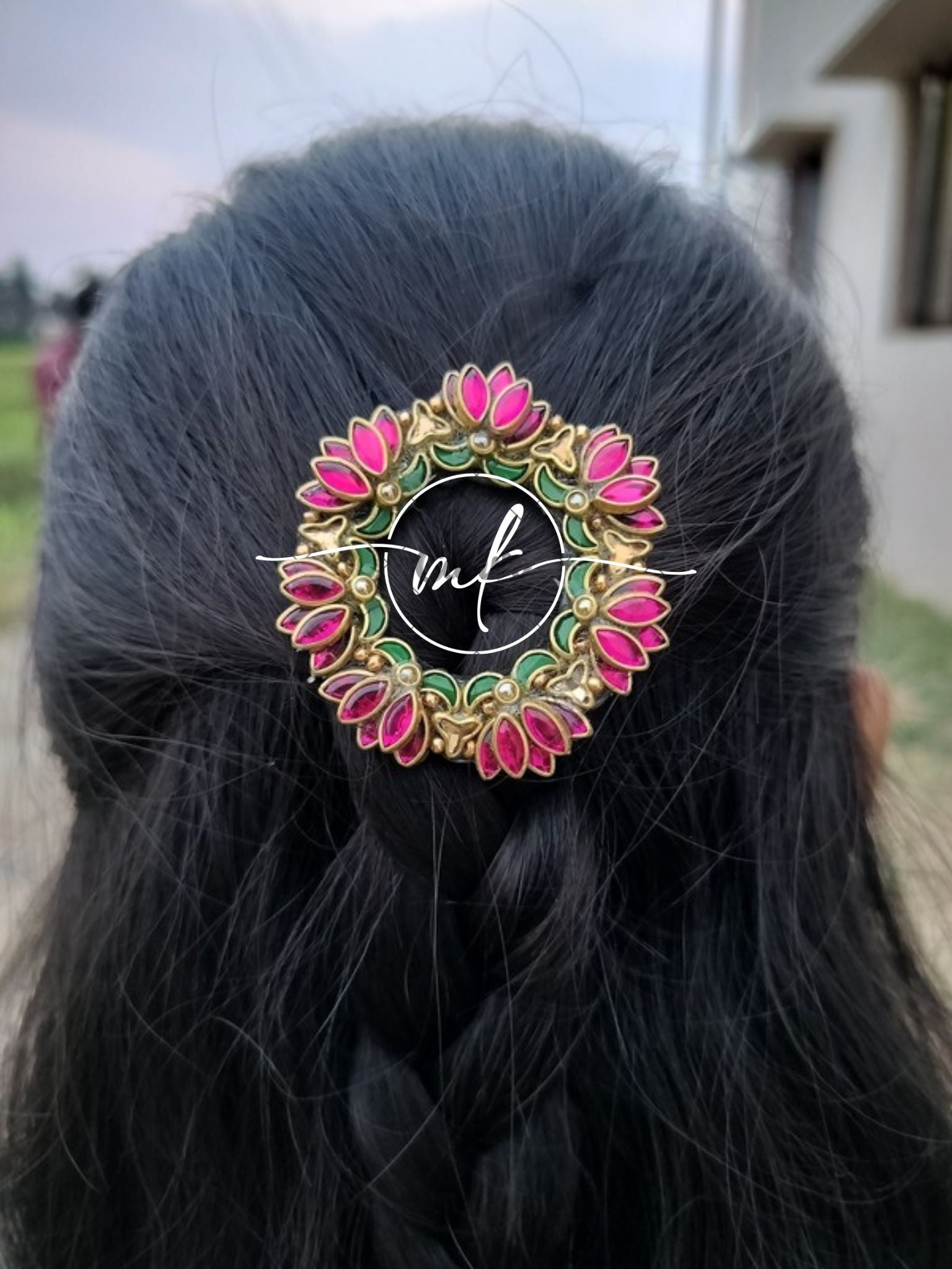 Lara Glossy Pink Lotus Hair Brooch