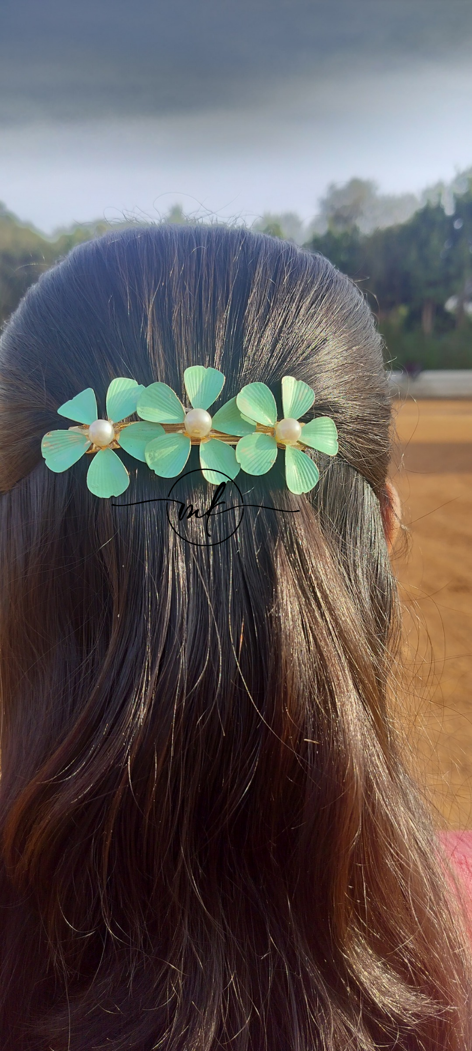 Mint Green floral center clip